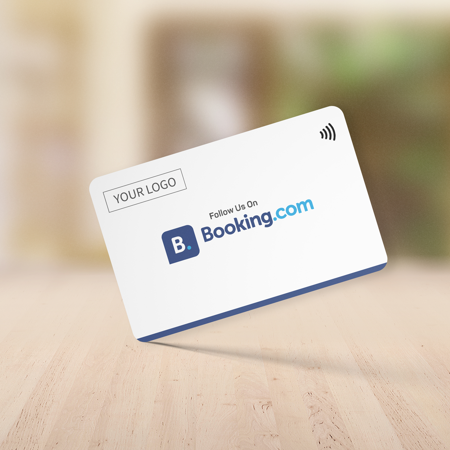 With the Contactless Booking.com Reviews NFC Cards, you can effortlessly gain new Booking.com reviews directly on-site.