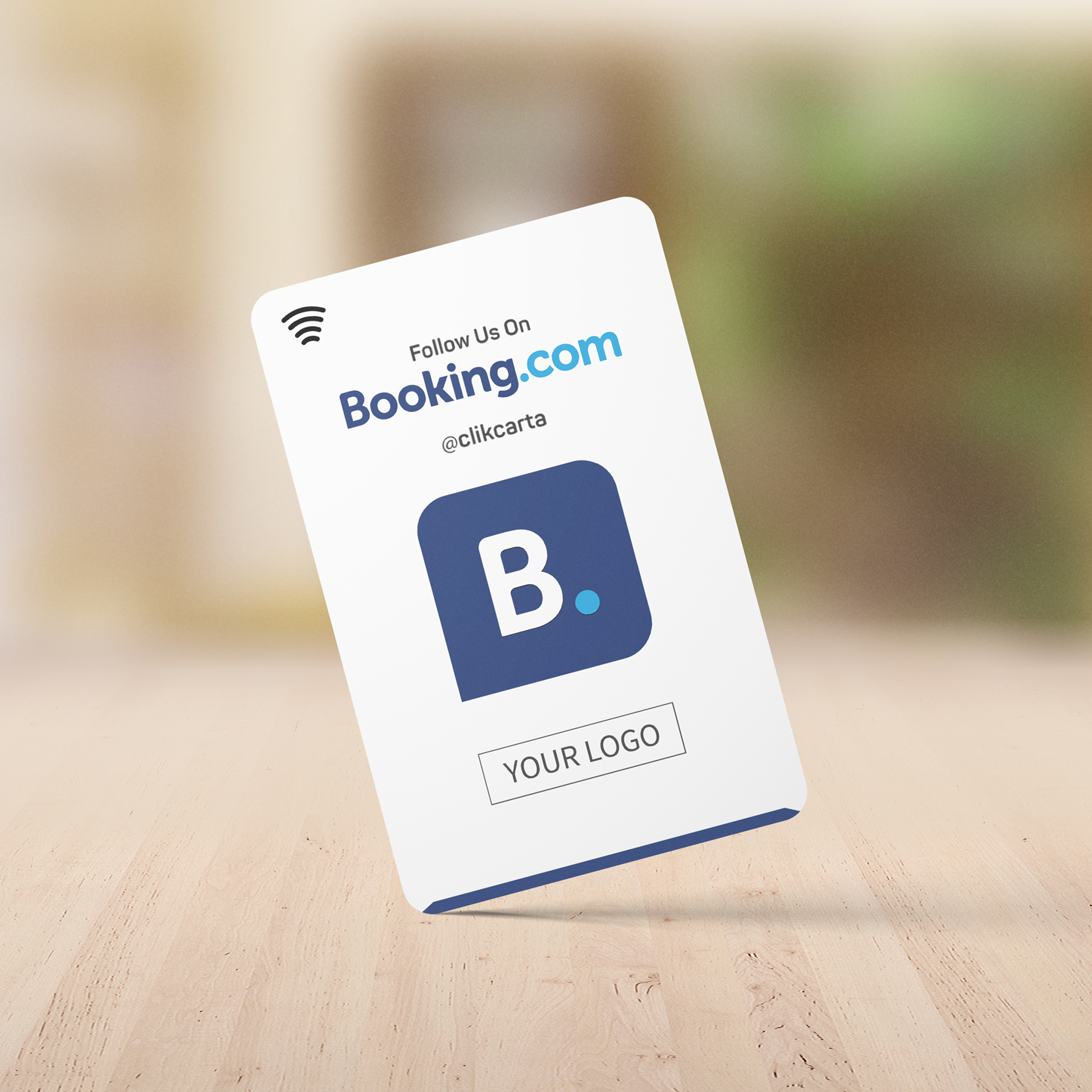 With the Contactless Booking.com Reviews NFC Cards, you can effortlessly gain new Booking.com reviews directly on-site.