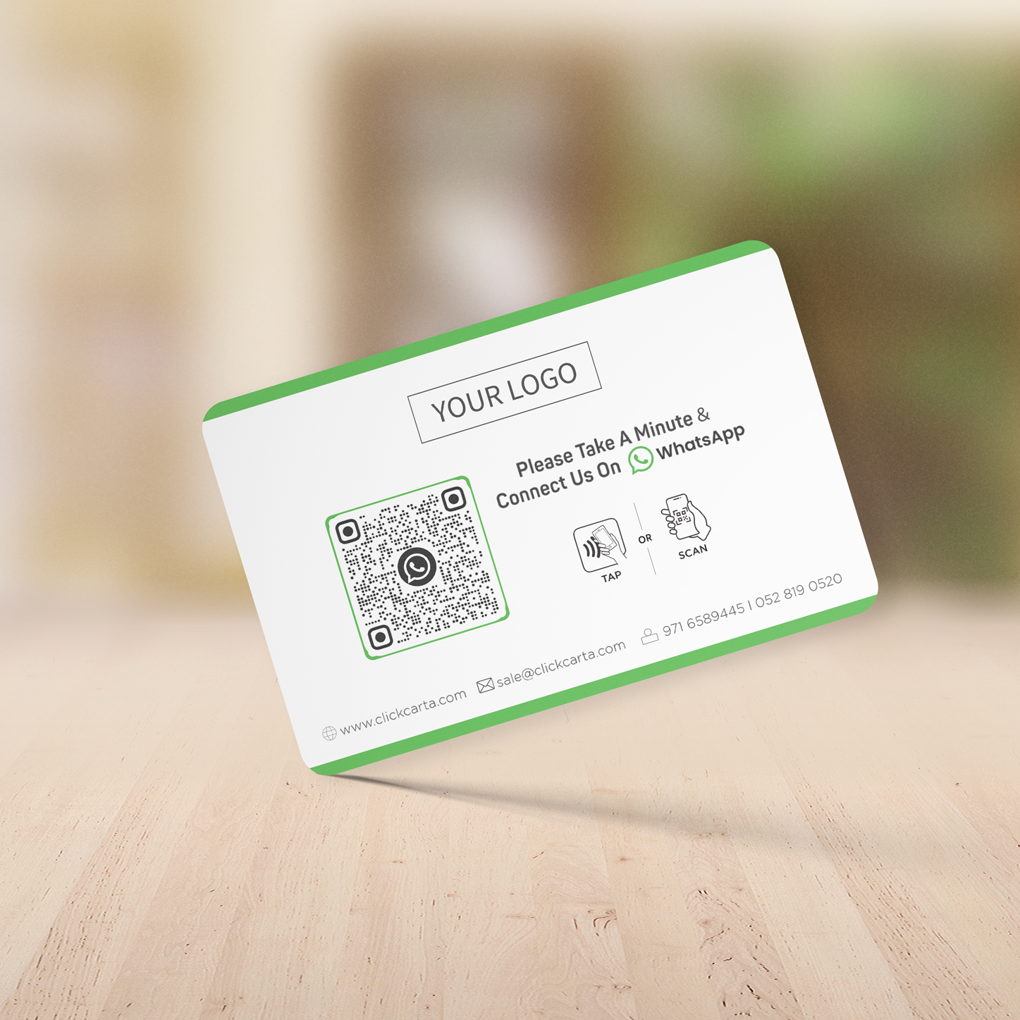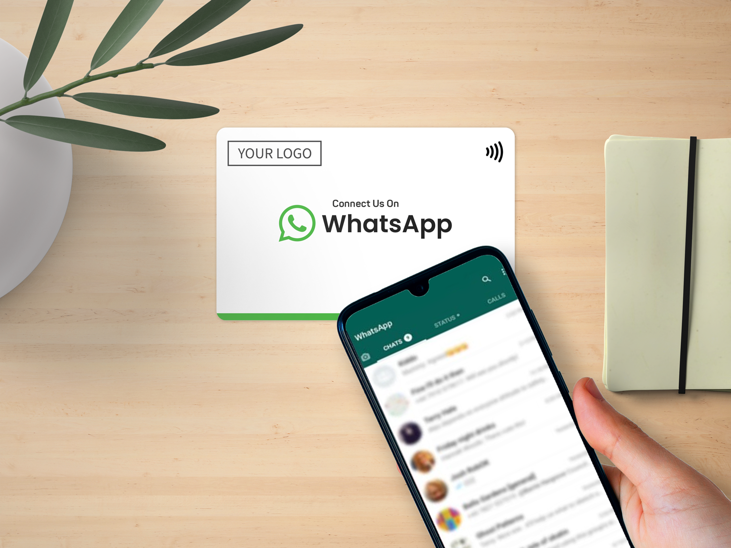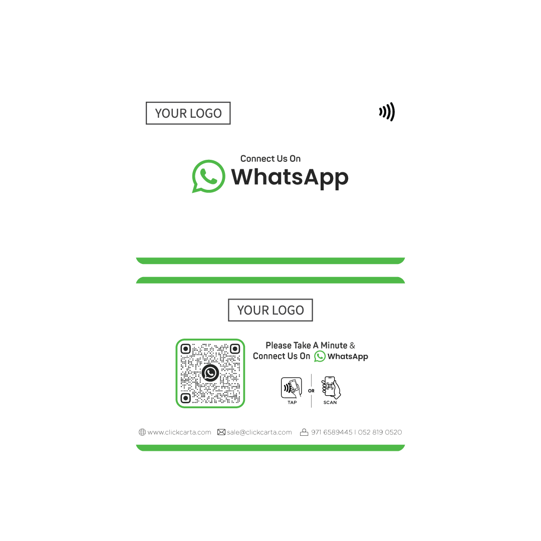 Personalized with your own QR code, which leads your customers directly to your WhatsApp chat, your WhatsApp phone number and your own logo.